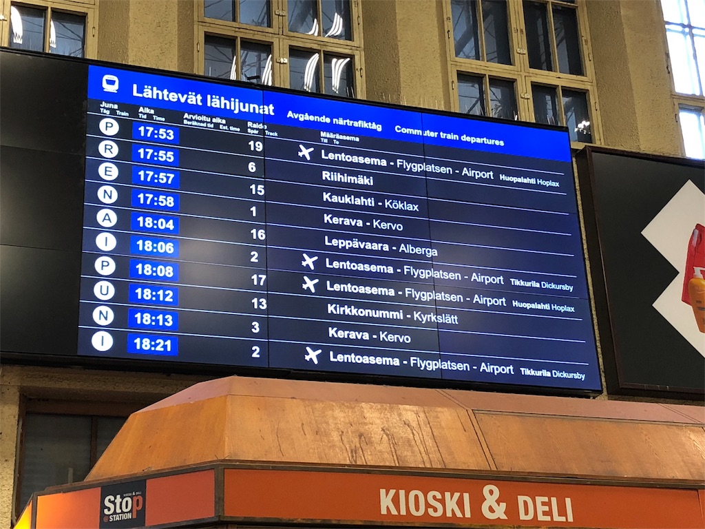 ヘルシンキ・ヴァンター国際空港に行くため、行先に飛行機の記号がついた電車に反射的に乗ったけど、まさか別の空港に向かっていないよね!?だって、「Lentoasema」って、ヴァンターのヴァの字もないよ!?