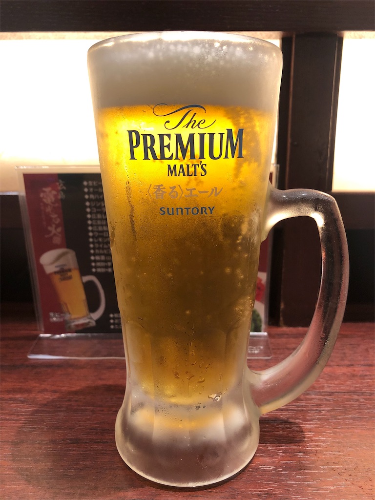 生ビール590円。飲みはじめてからお好み焼きが出てくるまでに少々時間があり、お好み焼きが出てくる前に全て飲んでしまわないように調節しながら飲みました。
