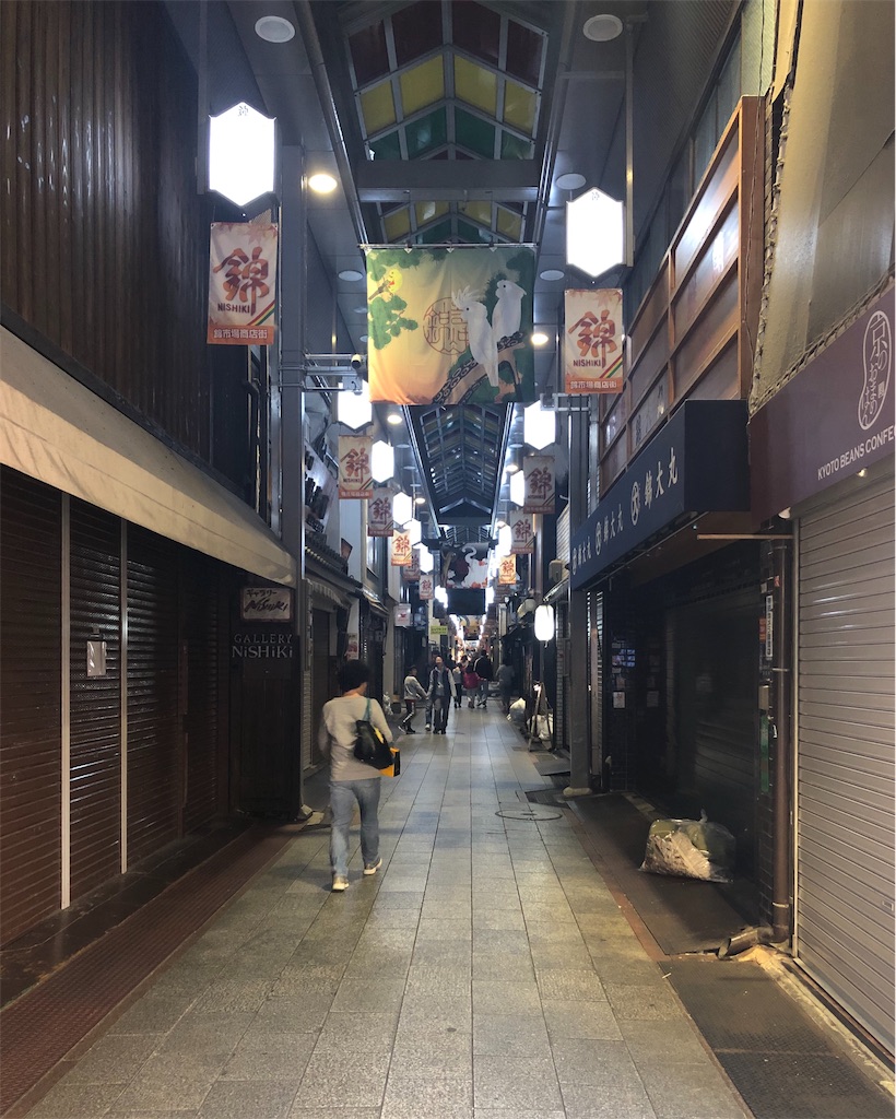 午後6時の時点ですでに閉店してしまったらしい錦市場を歩く。